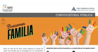 Las personas que se sientan convocadas a brindar un entorno familiar podrán acercarse al Registro Único de Adopción de Tucumán – RUPAT- ubicado en calle Crisóstomo Álvarez 535, Planta Baja de 07 a 13 horas.