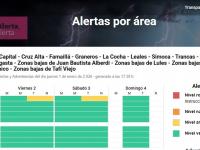 El informe de Alertas Tempranas resaltó que durante la tarde y noche del viernes, y la tarde y noche del sábado, "el área será afectada tormentas aisladas de variada intensidad, algunas localmente fuertes".