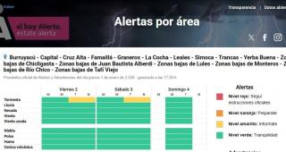 El organismo nacional también adelantó que durante estas dos jornadas, el primer fin de semana del año 2026, "se prevén valores de precipitación acumulada entre 20 y 40 mm, que podrían ser superados en forma puntual. En los niveles más altos de la cordillera las precipitaciones pueden ser mayormente en forma de nieve y/o granizo".