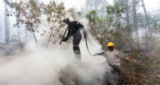 Maquinaria pesada: Topadoras, camiones cisterna y autobombas forestales 4x4.