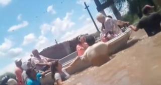 El operativo fue de alta complejidad: debido a la fuerza de la correntada, los rescatistas debieron, en muchos tramos, lanzarse al agua y nadar para guiar las embarcaciones, asegurándose de que el nivel del agua —que ya cubría calles por completo— no volcara los botes. Ante esta situación, el Jefe de Policía de la provincia dispuso que la División Lacustre se traslade a cada punto crítico para garantizar no solo las evacuaciones, sino también la entrega de alimentos en las zonas que permanecen aisladas.