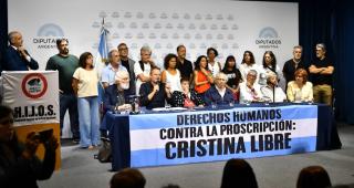 De la conferencia de este martes también participaron Claudio Morresi (Familiares de Desaparecidos y Detenidos por Razones Políticas), María de los Ángeles Suárez (Familiares de los 12 de la Santa Cruz), Martina Díaz (Nietes) y Flavia Fernández Grossi (abogada querellante en los juicios de lesa humanidad). Estuvieron presentes, además, Marcelo Figueras, Liliana Herrero, Cecilia Rossetto, Roberto Caballero, Marina Glezer, Teresa Donato, Lola Berthet, Susana Varela, Raúl Rizzo, Pablo Echarri, referentes del Sindicato de Trabajadores Judiciales (Sitraju), y diputados y senadores de la oposición./pagina12.com.ar