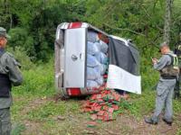 Inmediatamente, los gendarmes iniciaron un seguimiento y a unos kilómetros divisaron que el chofer perdió el control y volcó el rodado sobre la ruta. Ante este hecho, los funcionarios procedieron a aprehender a los ocupantes de la camioneta, dos hombres mayores de edad, y descubrieron que se transportaba sobre el asiento trasero y dentro de la caja bultos que contenían un total de 690 kilos de hojas de coca en estado natural.