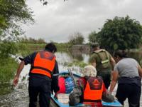 Ante ese escenario, los gendarmes coordinaron con Bomberos Voluntarios de Simoca la disponibilidad de un bote, lo que permitió ingresar al lugar y concretar con éxito la evacuación de ambas personas, quienes luego fueron trasladadas, quedando al resguardo junto a sus familiares./Gendarmería Nacional