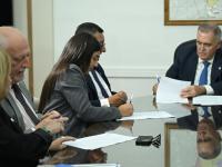 El gobernador, Osvaldo Jaldo, junto al ministro del Interior, Darío Monteros, se reunió con la intendenta de Aguilares, Gimena Mansilla y delegados comunales con quienes se firmó el convenio Plan Bonificar que beneficiará en el pago de la energía eléctrica por dos bimestres a familias afectadas por las inundaciones comunas de La Madrid, Villa Belgrano, Santa Ana, Barrios de Aguilares y Las Salinas (El Timbo), entre otras localidades.