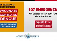 El Ministerio de Salud Pública de Tucumán, a cargo de Luis Medina Ruiz, llevará adelante una nueva jornada de vacunación gratuita este sábado 13 de diciembre.